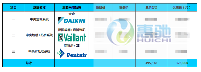 家居集成系統: 大金中央空調VRV-P系列、德國威能/嘉科米尼 中央地暖/熱水系統、濱特爾中央水處理