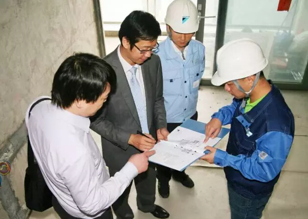 工事溝通現場:家用中央空調的安裝事先需要用戶、內裝公司及PROSHOP安裝團隊充分溝通。