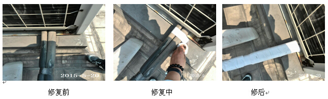 經(jīng)過(guò)修補(bǔ)后的連接管,不僅更加美觀,同時(shí)也增強(qiáng)了機(jī)組的防護(hù)和保溫效果,達(dá)到節(jié)能的效果。
