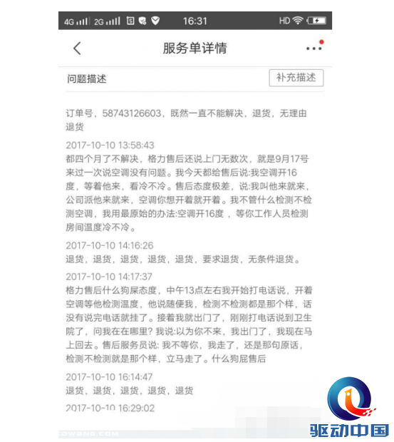 據(jù)運營商世界網(wǎng)報道,今年10月份,貴州興義的消費者花了3萬多元,安裝格力中央空調(diào),在室內(nèi)機安好后開始吊頂、然后需要安裝室外機時,該消費者提前一星期聯(lián)系了格力空調(diào)要求及時發(fā)貨,但是卻一直被拖時間,在消費者強烈反應(yīng)后,才給消費者查出“還沒有發(fā)貨”這個結(jié)果。從投訴到現(xiàn)在時間已經(jīng)過去一個月,令消費者十分生氣的是格力方面卻還是沒有發(fā)貨,仍然在拖延時間。