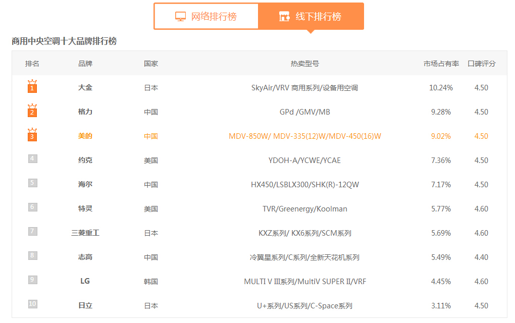 下面小編為大家介紹一下位于線下銷售排行榜最高的大金商用中央空調